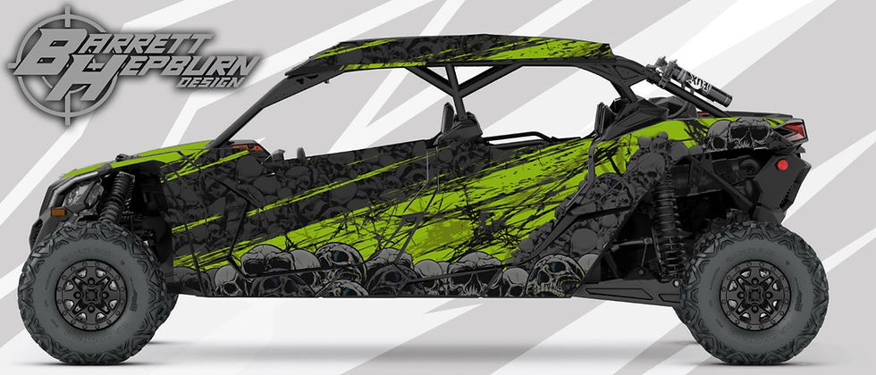 Rev up your Can-Am Maverick X3 Max build with an original Barrett Hepburn Design vinyl armor wrap kit for SXS, UTV, Sled and ATV. Protective 21 mil vinyl wrap kits for Can-Am Maverick X3 Max DS Turbo, Can-Am Maverick X3 Max DS Turbo RR, Can-Am Maverick X3 Max X DS Turbo RR, Can-Am Maverick X3 Max X RS Turbo RR available in in over eight finish combinations: Gloss, Matte, Metal Flake Gold, Metal Flake Silver and Metal Flake Color Shift (Exotic finishes Chrome, Holographic Chameleon and Exotic Metal Flake available by special request). Barrett Hepburn Design, BHDWraps graphics and wrap kits are built for extremes - environments, riding and people. Specifically engineered for the off-road 4x4 market and trusted worldwide, we ship globally; our wrap kits are easily self-installed. We're proud to offer the toughest SXS UTV vinyl armor on the market. Barrett Hepburn Design, BHDWraps graphics and wrap kits are designed to provide superior protection against wear and tear and take your Can-Am Maverick X3 Max build to the next level.